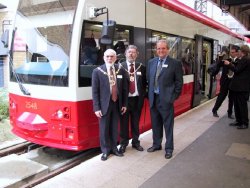 1 Opening Ceremony A ribbon was cut and the VIPs travelled on 2548 to Wimbledon stopping at Phipps Bridge for photos. After the VIPs had returned to Croydon, all trams on the route started carrying passengers at 1200. The First departure from Wimbledon was packed with enthusiasts and passengers and left at 1200 with 2538. This line which uses parts of the former Railtrack Elmers End - Addiscombe and West Croydon - Wimbledon lines opened just a day short of 3 years since the last passenger trains and the final Connex Last In Last Out Railtour ran over these lines on 31st May 1997.